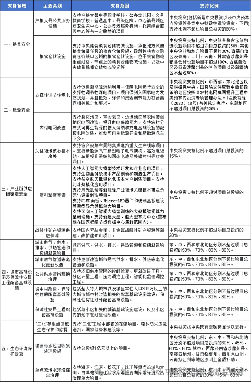 表超长期特别国债重点支持范围和支持比例